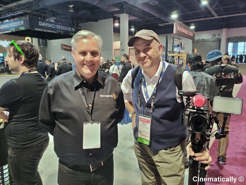 Αυτός είναι ο φίλος μου ο Σάιμον Γουέστλαντ, ένα από τα ηγετικά στελέχη της Blackmagic, ένας άριστος γνώστης της δουλειάς μας, σειρά μου, είμαστε τα ίδια 30-35 χρόνια στην δουλειά αυτή εγώ και ο Σάιμον, και πάντα είναι μεγάλη μου χαρά να τον συναντώ κάθε χρόνο στο Βέγκας και στο Αμστερνταμ, και να μου δίνει συνεντεύξεις και να με ξεναγεί στα καινούργια προϊόντα.
