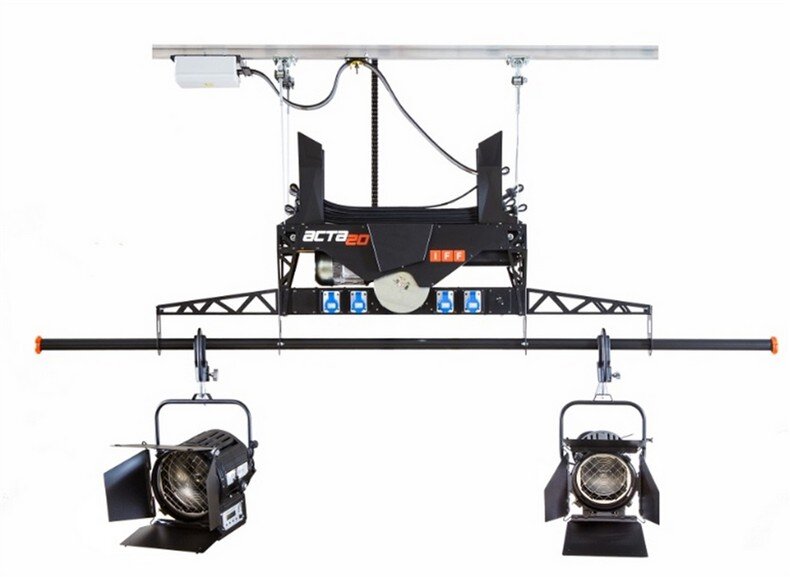 Παρά το μικρό του συμπαγές μέγεθος, το studio lift/σταγκόνι Acta 20, είναι πανίσχυρο, με έξι πα-ροχές Schuko για φώτα, με δυνατότητα/πρόβλεψη για προσθήκη συνδέσεων βίντεο, ήχου, DMX και Ethernet.