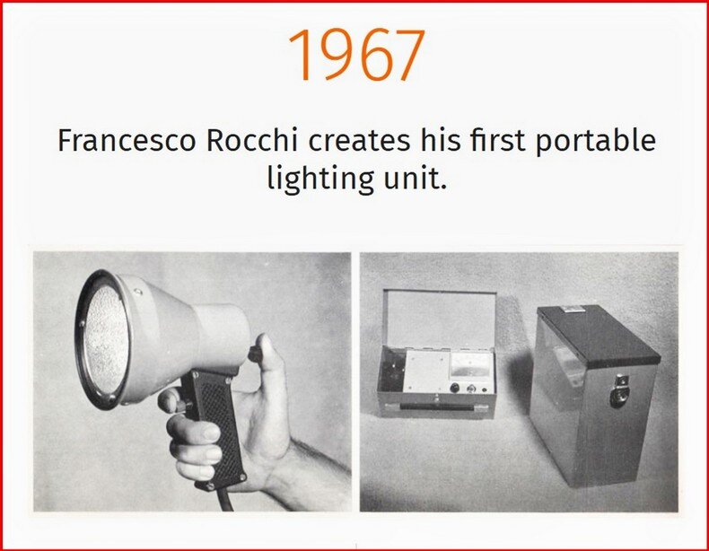 Το 1967 ο Francesco Rocchi παρουσίασε στην αγορά ένα από τα πρώτα -παγκοσμίως- φορητά φωτιστικά, αυτό που βλέπετε στην φωτογραφία.