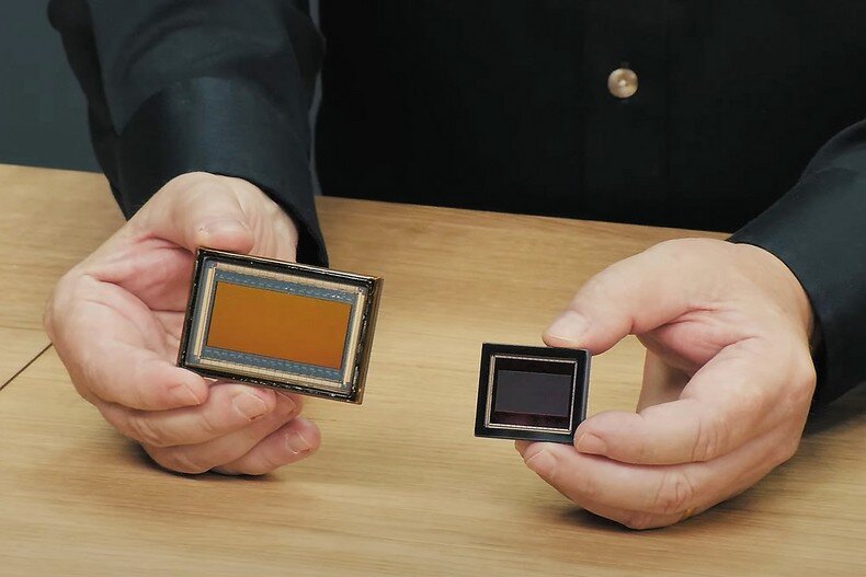 Στη φωτογραφία αυτή βλέπετε στα χέρια του φίλου μου του Γκραντ Πέτι, του οραματιστή και πρωτοπόρου ιδρυτή και CEO της Blackmagic Design, δύο αισθητήρες από δύο διαφορετικές κάμερες της Blackmagic. Δεξιά, ο μικρότερος, είναι ο σένσορας της 12άρας (12K) Super-35 Mini Ursa, και αριστερά, ο μεγάλος σένσορας, είναι αυτός της URSA Cine 17K 65. Οπως βλέπετε είναι σχεδόν τριπλάσιος σε μέγεθος ο αισθητήρας της ναυαρχίδας της εταιρείας.
