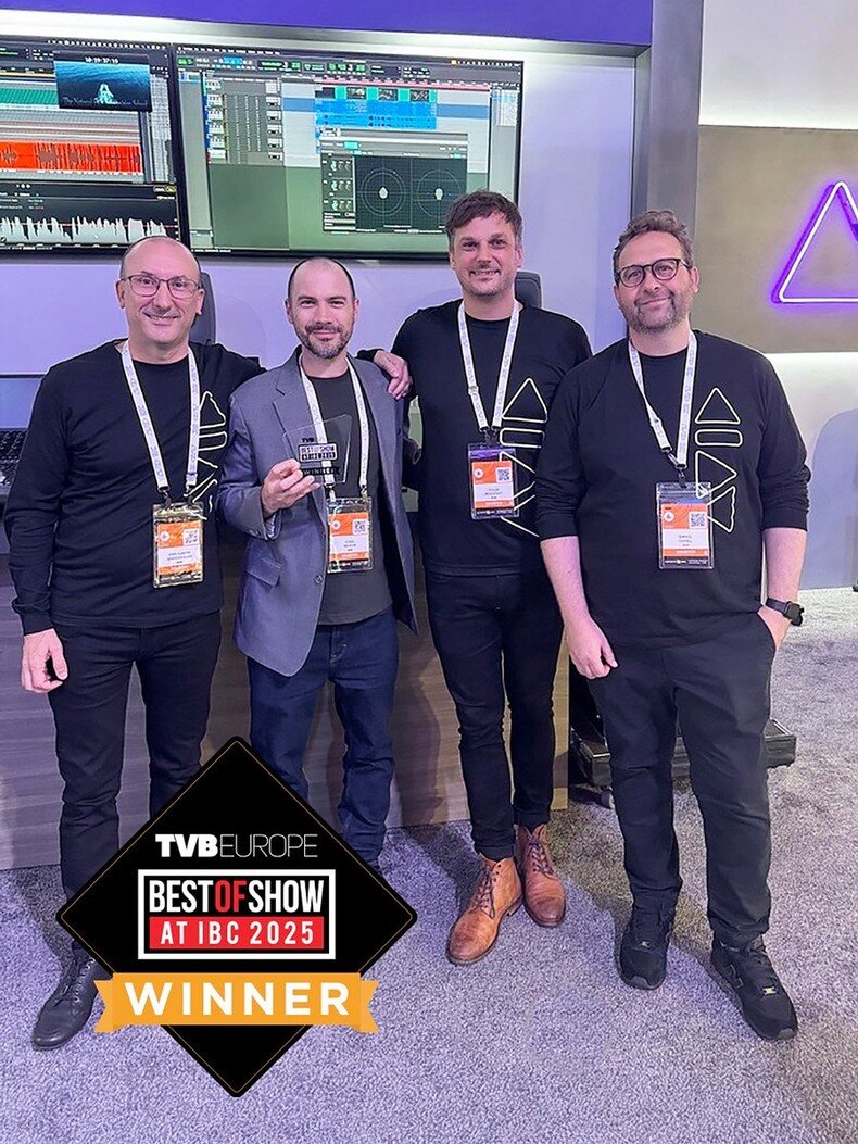 H ομάδα της Avid ποζάρει υπερήφανα μαζί με το σπουδαίο βραβείο TV Tech Best of Show που κέρδισε στο IBC 2025 για την καταπληκτική της πλατφόρμα Content Core Panel.