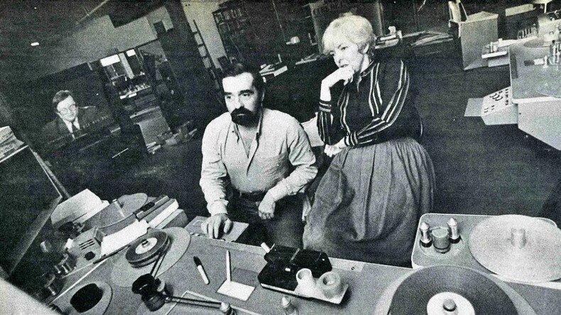 οι μόνιμοι -επί μισό αιώνα- συνεργάτες Σκουνμέικερ και Σκορσέζι κάθονται μπροστά από την μουβιόλα και μοντάρουν κάποιο από τα αριστουργήματα στου τεράστιου Σκορσέζι.